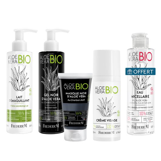 Aloe Vera Cleansing Milk + Black Aloe Vera Gel with Activated Charcoal + Aloe Vera Charcoal Mask 75 ml + Aloe Vera Face Cream + Micellar Water